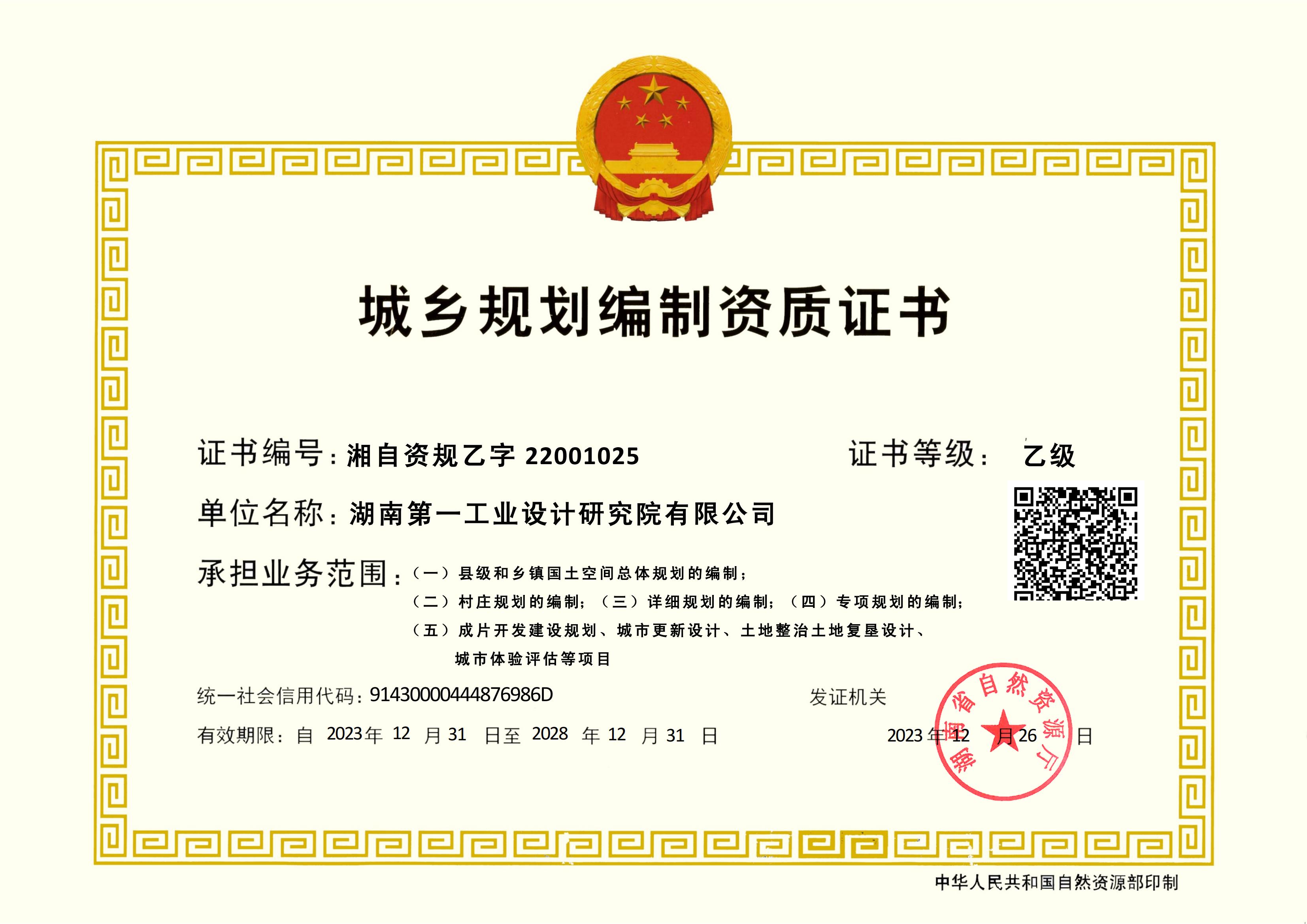 城鄉規劃編制資質證書